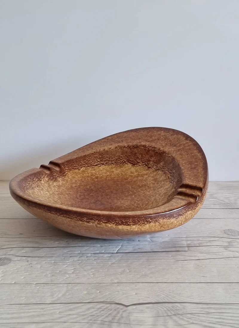 Bertoncello Ceramiche Screziato Tabacco Glaze Sculptured Soft Twist Dish, 1960s-80s