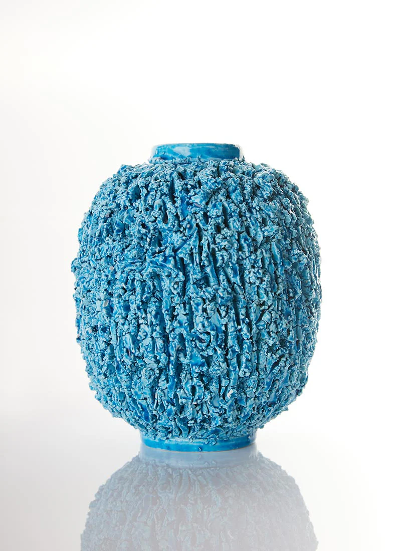 Gunnar Nylund Chamotte 'Hedgehog' Series, Sculpted Turquoise Vase, 1940s-50s