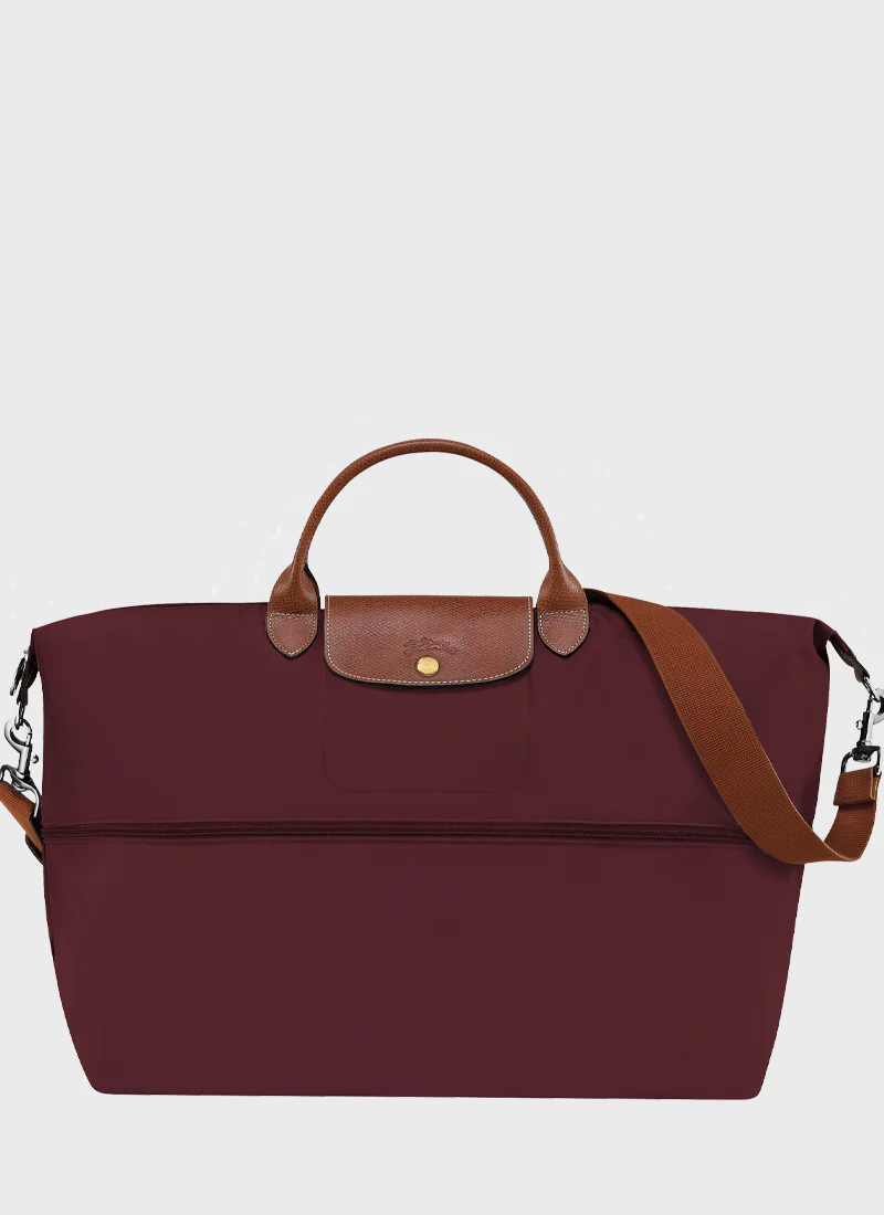 Le Pliage Original Travel Bag Expandable by Longchamp has a snap-fastening button flap plays with the codes of the Le Pliage bag in a ātravelā version. Longchamp drew its inspiration from origami when creating LE