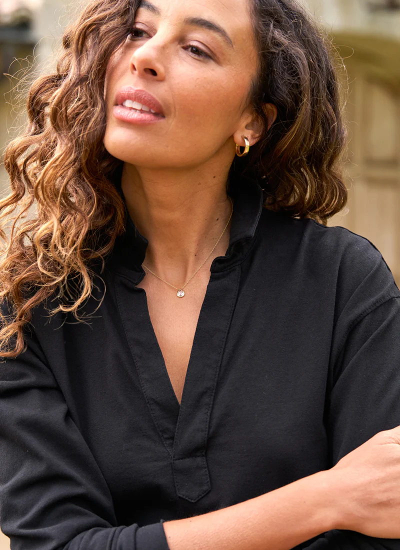 The Patrick Popover T-Shirt by Frank & Eileen is a classic silhouette with stylish design details throughout. Crafted from premium cotton, this henley has a slight drop sleeve and a straight raw-cut hem that looks cropped without sacrificing any length or coverage. Style with everything from tailored trousers to high-waisted denim.