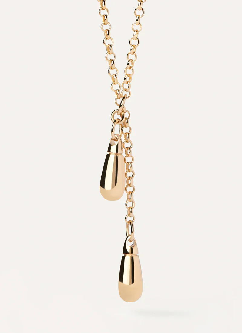 The Tango Chain Necklace by PDPAOLA Andrews is an artful expression of individuality and luxury. Adorned with drop-shaped natural gemstones, such as labradorite and aventurine, and complemented by shimmering pavé detailing, this piece offers the perfect blend of elegance and personal flair. Pair it with a silk blouse or tailored blazer for an elevated look.