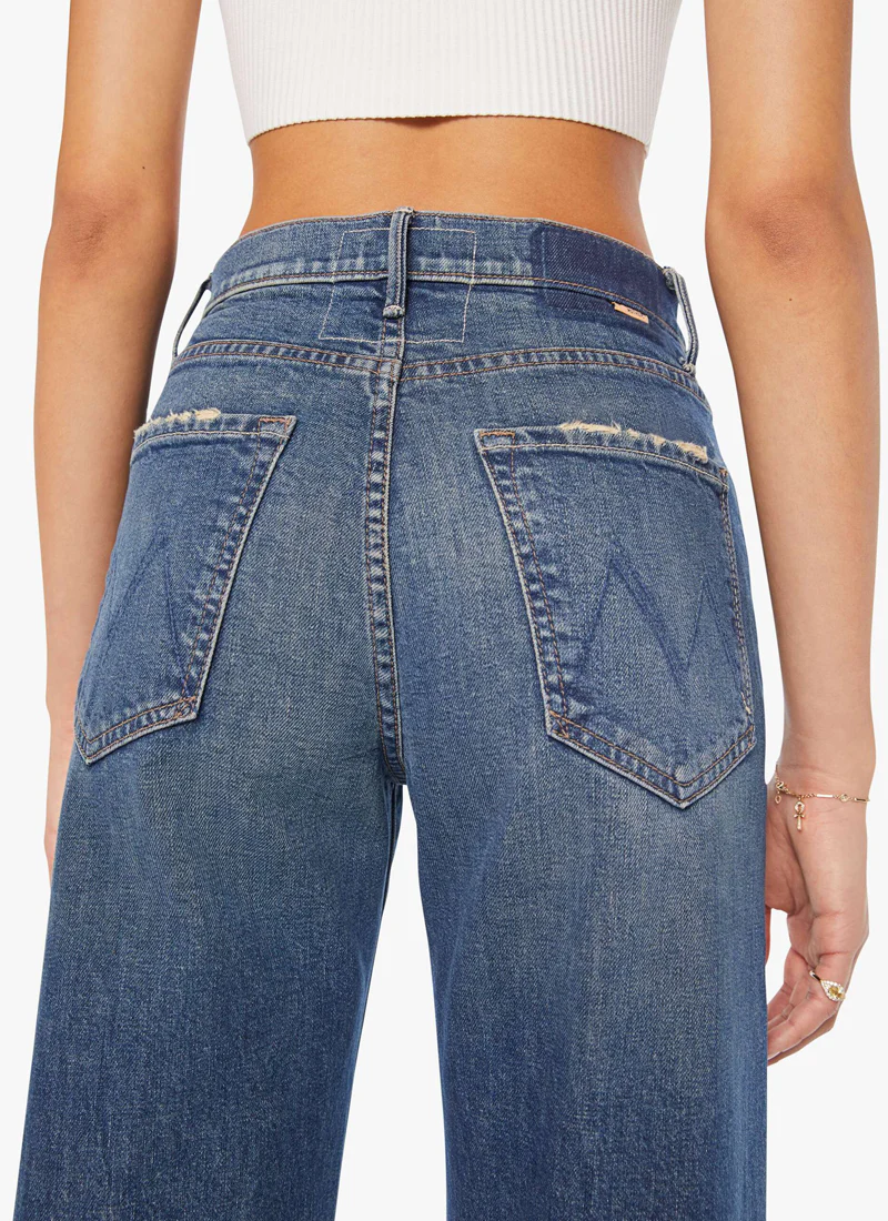 The Lasso Sneak by MOTHER at Andrews brings effortless edge to your everyday denim rotation. Crafted from MOTHER’s signature semi-rigid SUPERIOR denim, this wide-leg silhouette sits high on the waist with a 32-inch inseam and clean hem, while the Punk Nouveau wash features artful fading, whiskering, and distressing for that perfectly worn-in feel. Style with a fitted cashmere tank and sculptural gold jewelry to balance its relaxed structure.